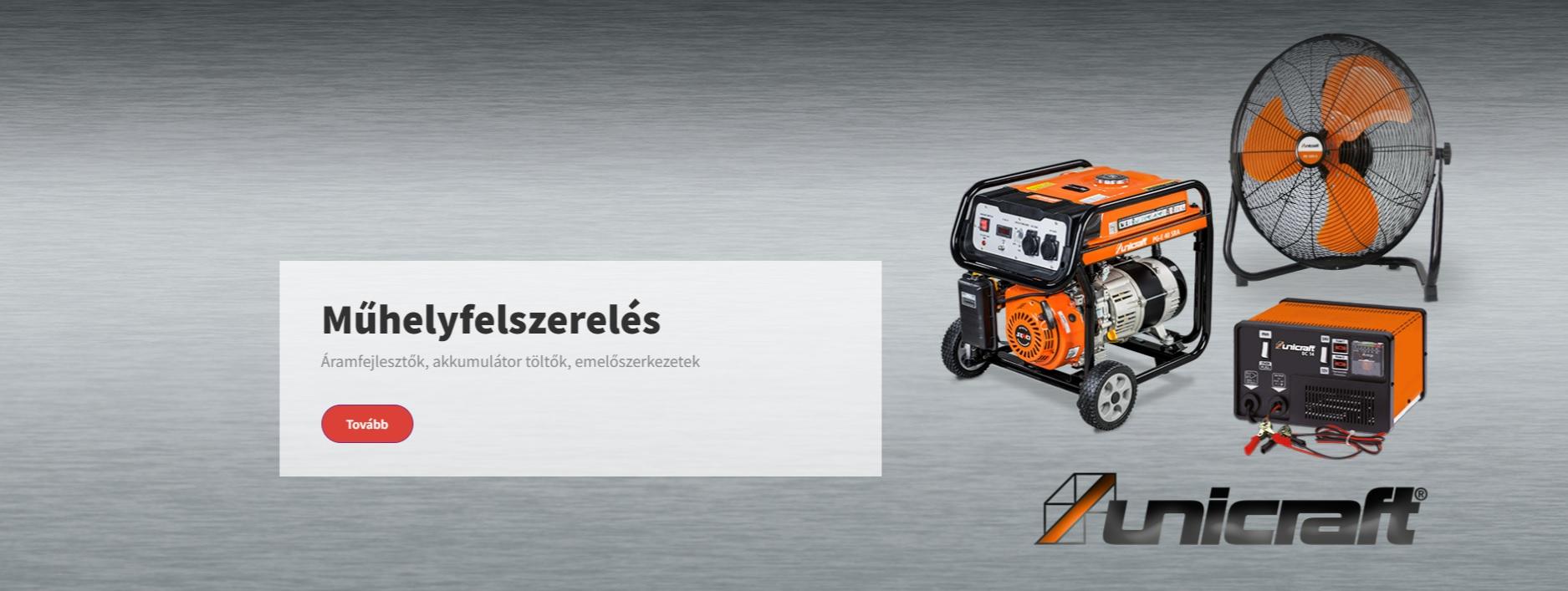 - Autóipari-, garázsipari-, műhelyfelszerelés. Az Unicraft széles kínálatában szinte minden megtalálható. Prések, homokszórók, kiemelő zsiráfok, stb.
